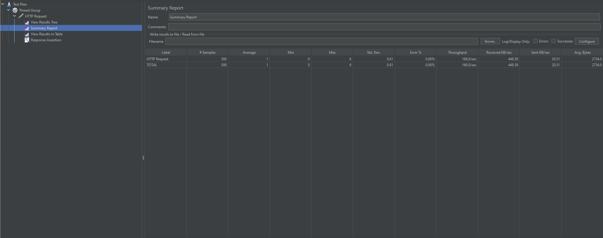 모두 완료되었다면 뒤에서 만든 View Results Tree,Summary Report, View Results in Table을 클릭해보면 결과를 알 수 있습니다.