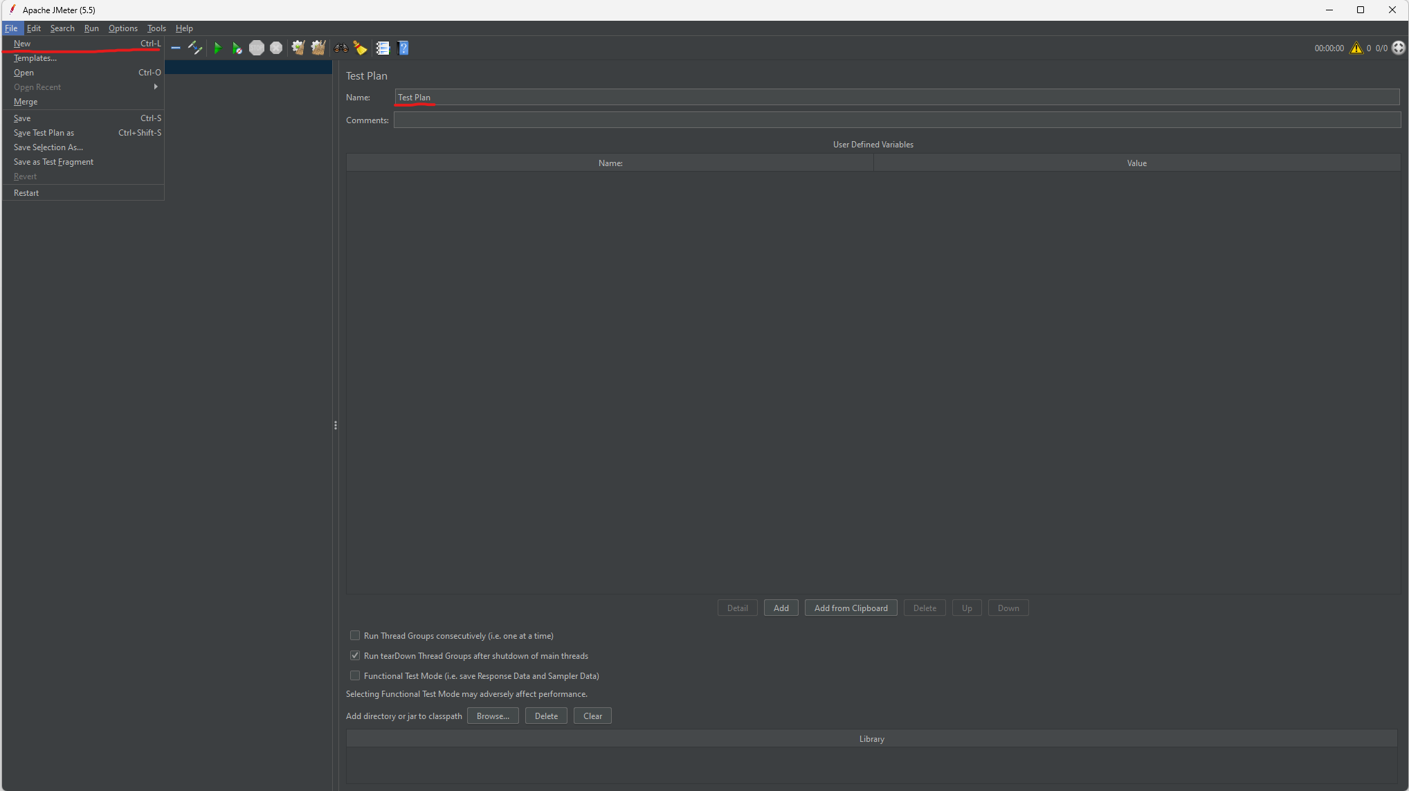 File -> New -> Test Plan Name 설정