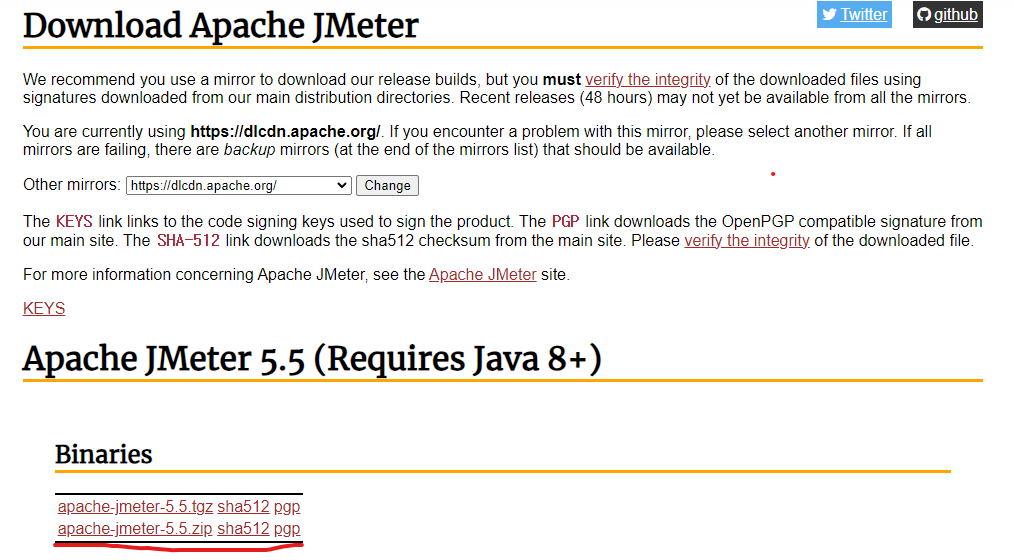 2. apache-jmeter-5.5.zip 클릭해서 다운로드 후 압축해제