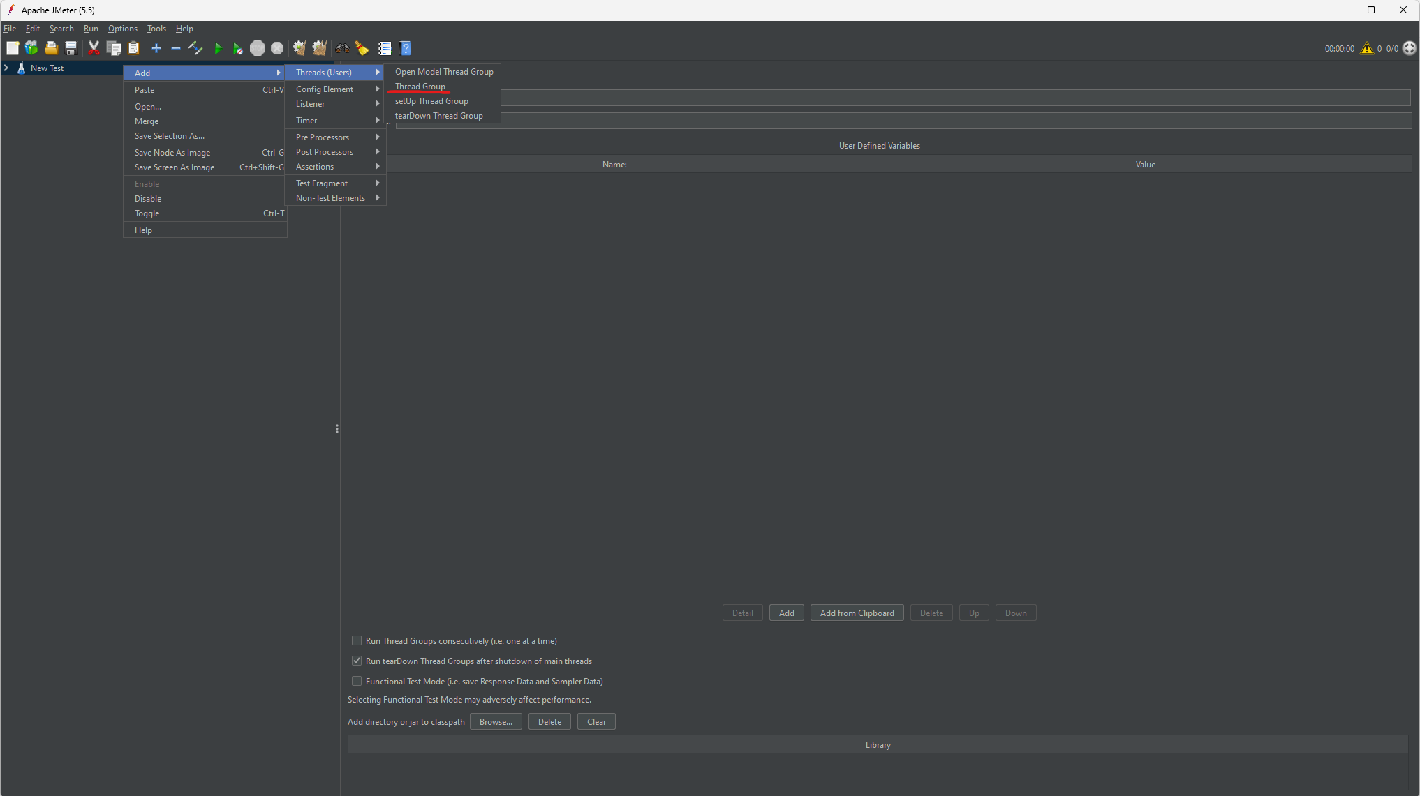 생성한 Test Plan 우클릭 -> Add -> Threads(Users) -> Thread Group
